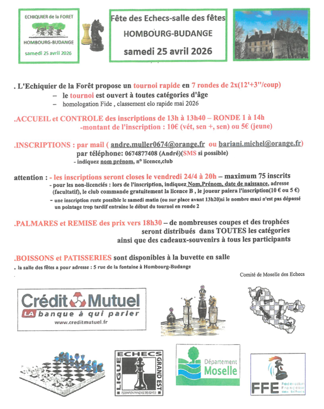 Fête des échecs Samedi 25 Avril 2026
